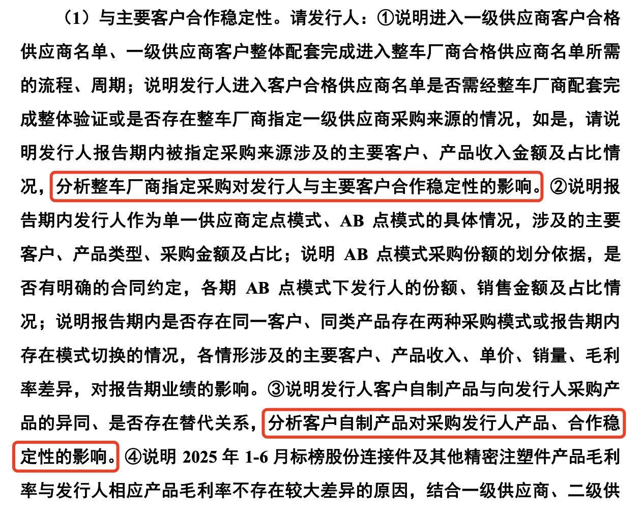 北交所要求弥富科技,说明进入一级供应商客户合格供应商名单、一级供应商客户整体配套完成进入整车厂商合格供应商名单所需的流程、周期;说明公司进入客户合格供应商名单是否需经整车厂商配套完成整体验证或是否存在整车厂商指定一级供应商采购来源的情况,如是,请说明公司报告期内被指定采购来源涉及的主要客户、产品收入金额及占比情况,分析整车厂商指定采购对公司与主要客户合作稳定性的影响。说明公司客户自制产品与向公司采购产品的异同、是否存在替代关系,分析客户自制产品对采购公司产品、合作稳定性的影响。